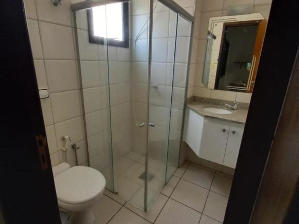 Quarto grande, uma cama de casal e uma de solteiro, geladeira, guarda roupas e ar condicionado.
